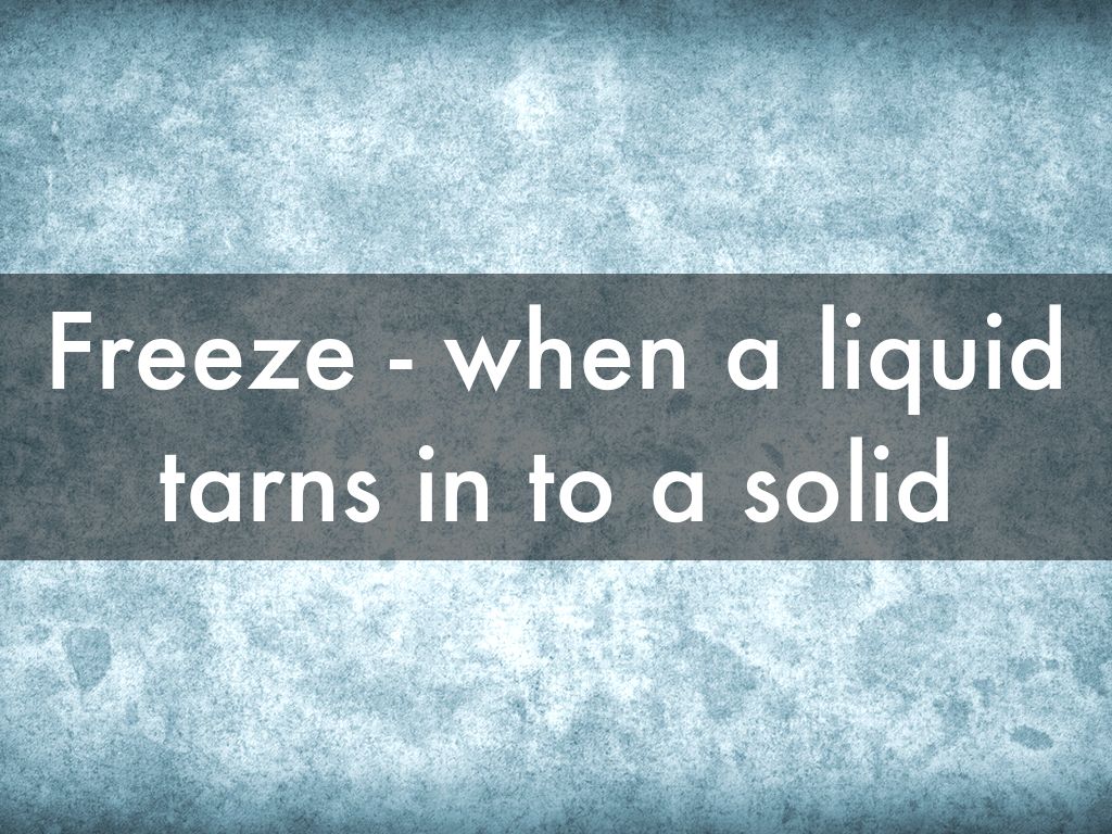 Freeze - when a liquid tarns in to a solid
