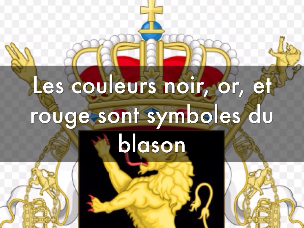 Noir reprèsente le bouclier, or reprèsente le lion, rouge reprèsente les griffes du lion et langue
