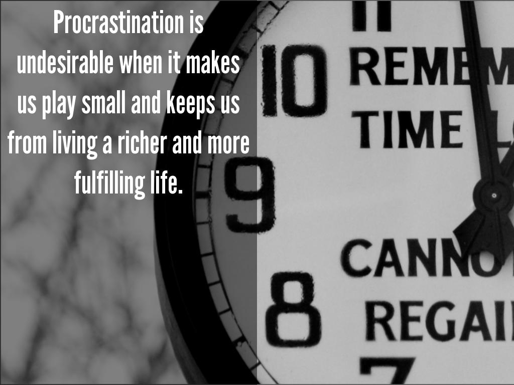 Procrastination is undesirable when it makes us play small and keeps us from living a richer and more fulfilling life.