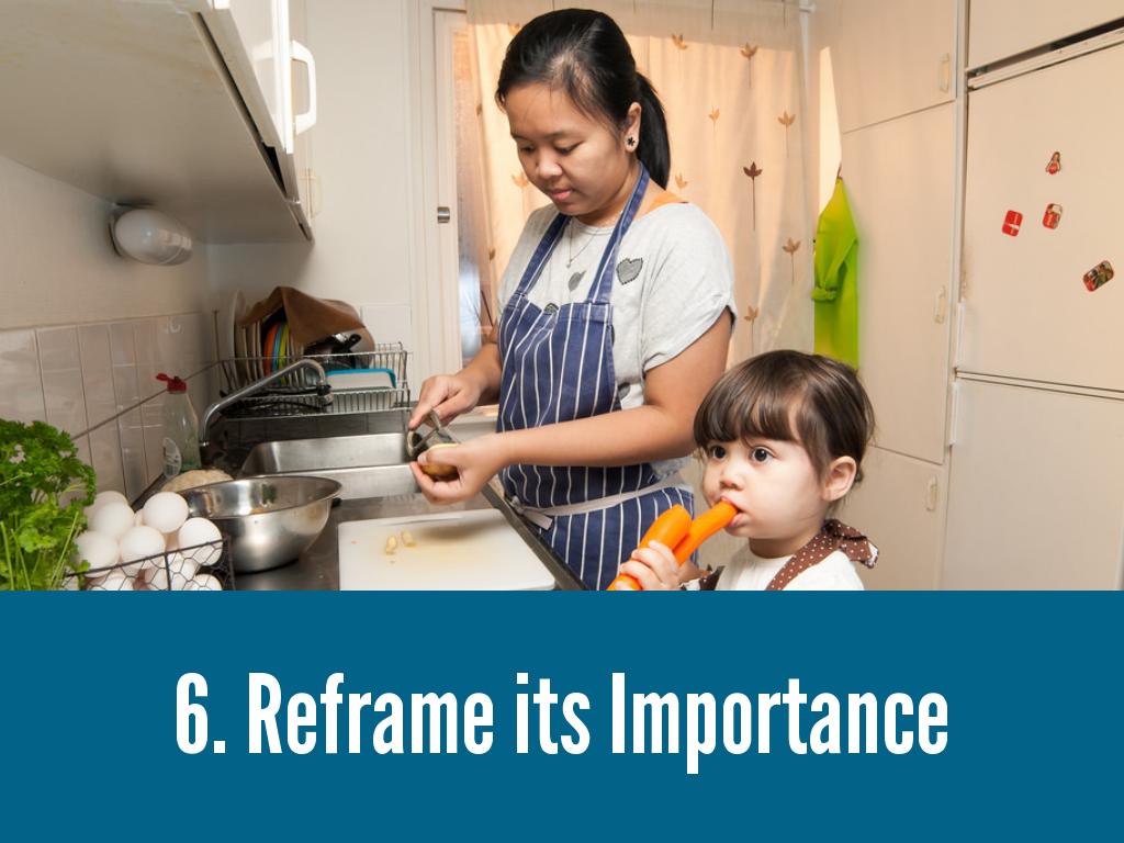 If you know a task has to be done, but it’s not emotionally important to you, find a way to make it important. I hate to admit this, but I don’t like cooking! However, I have to reframe its importance because I want my family to eat healthy instead of eating out (and spending oodles of money) or going through a fast food drive-thru. This reframe makes me want to be creative when it comes to cooking so I can enjoy the process too.