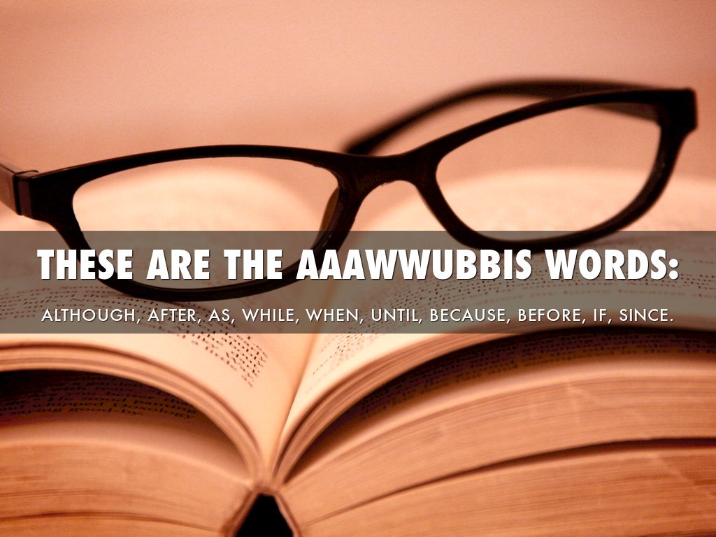 ALTHOUGH, AFTER, AS, WHILE, WHEN, UNTIL, BECAUSE, BEFORE, IF, SINCE.