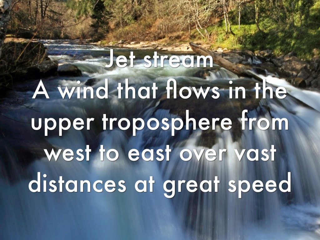 A wind that flows in the upper troposphere from west to east over vast distances at great speed
