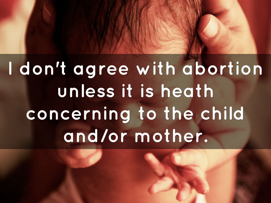 I don't agree with abortion unless it is heath concerning to the child and/or mother.