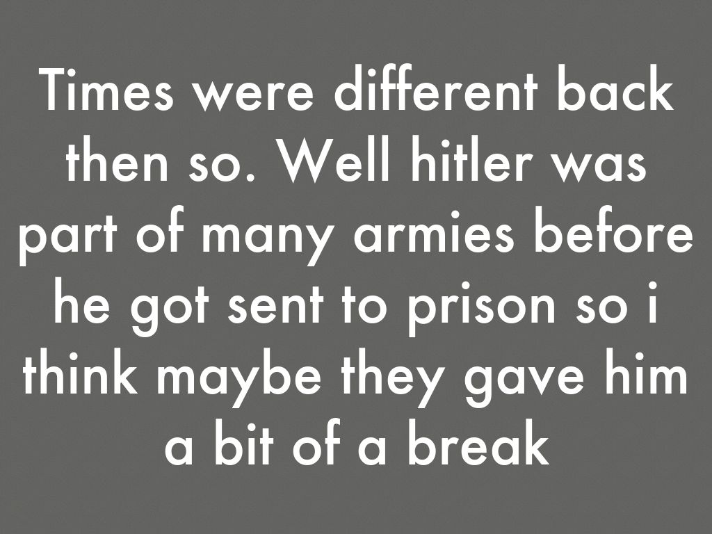 Times were different back then so. Well hitler was part of many armies before he got sent to prison so i think maybe they gave him a bit of a break