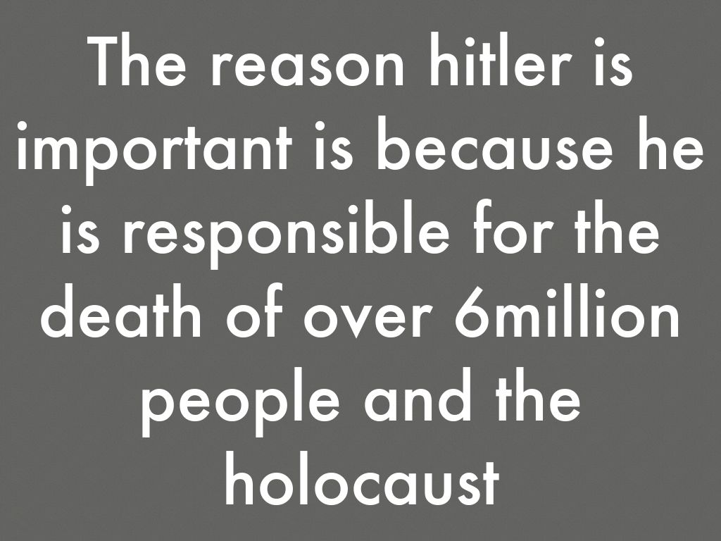 The reason hitler is important is because he is responsible for the death of over 6million people and the holocaust