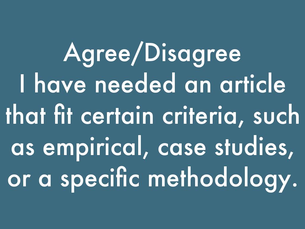 I have needed an article that fit certain criteria, such as empirical, case studies, or a specific methodology.