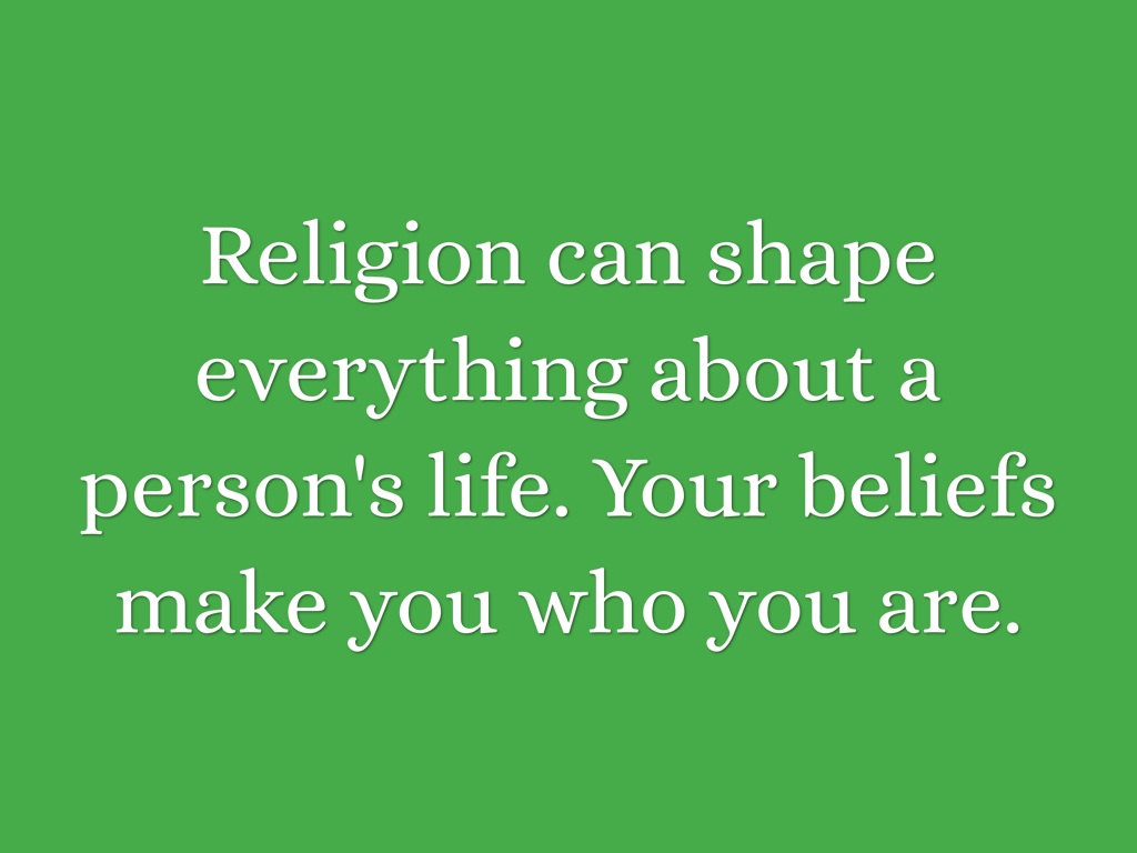 Religion can shape everything about a person's life. Your beliefs make you who you are.