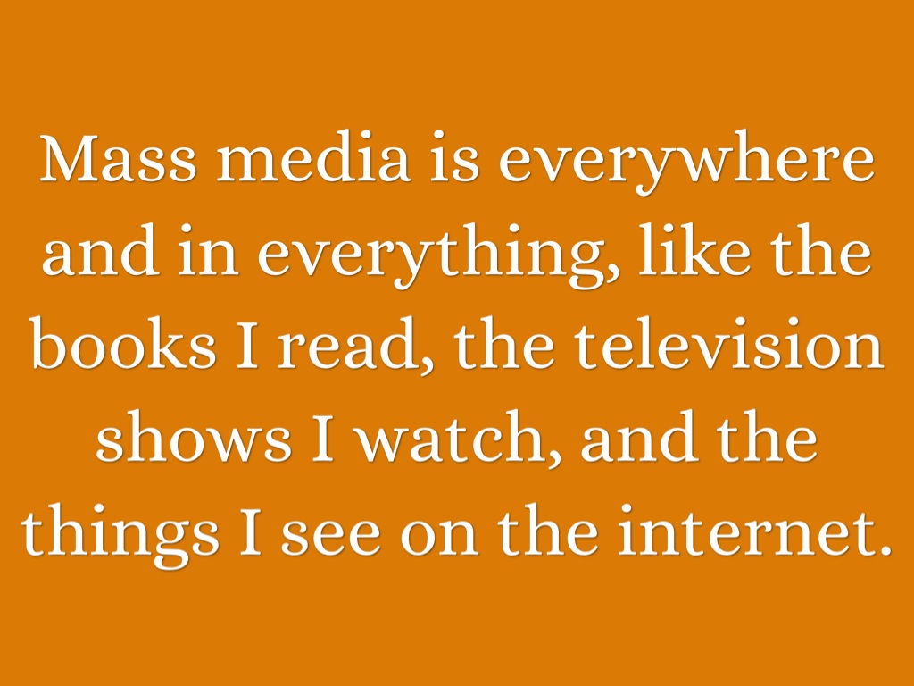 Mass media is everywhere and in everything, like the books I read, the television shows I watch, and the things I see on the internet.