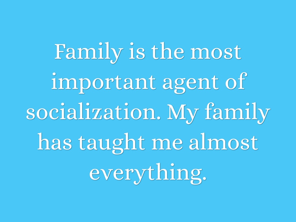 Family is the most important agent of socialization. My family has taught me almost everything.