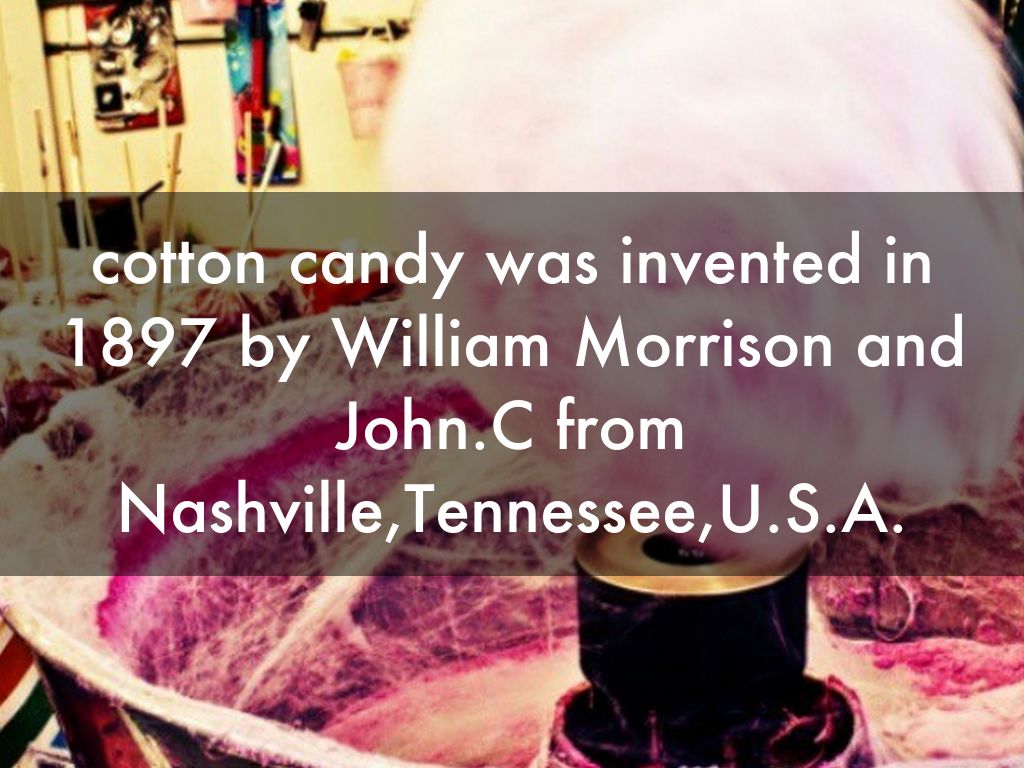 cotton candy was invented in 1897 by William Morrison and John.C from Nashville,Tennessee,U.S.A.