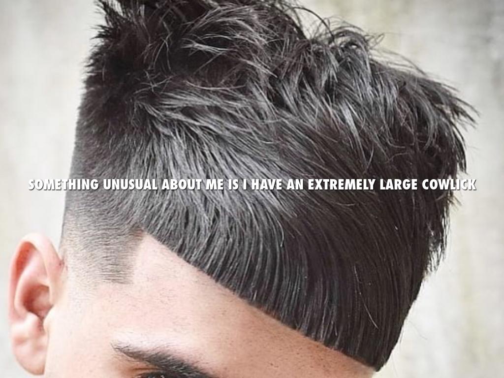 SOMETHING UNUSUAL ABOUT ME IS I HAVE AN EXTREMELY LARGE COWLICK