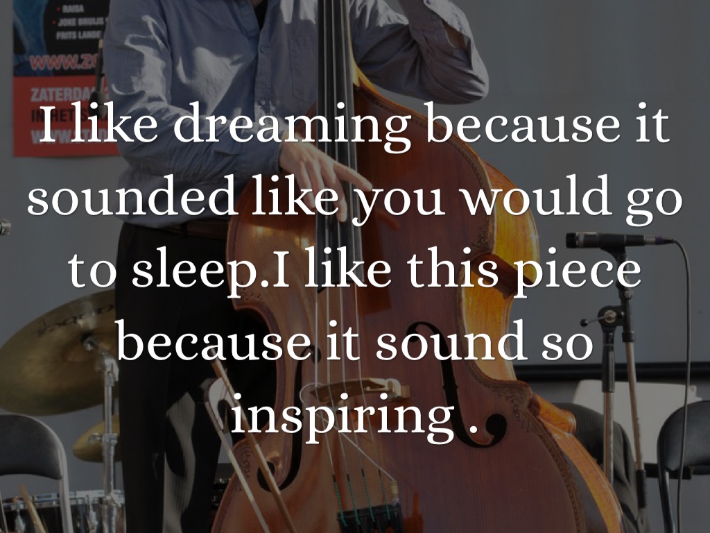 I like dreaming because it sounded like you would go to sleep.I like this piece because it sound so inspiring .