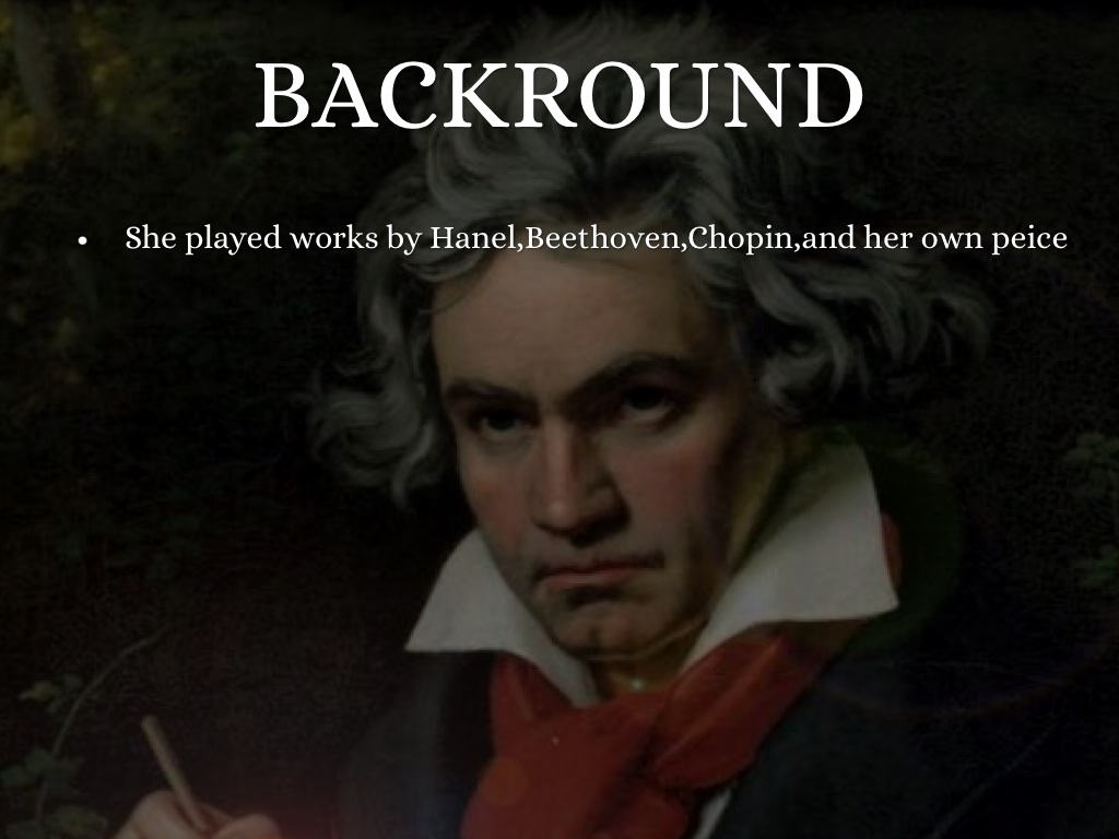 She played works by Hanel,Beethoven,Chopin,and her own peice