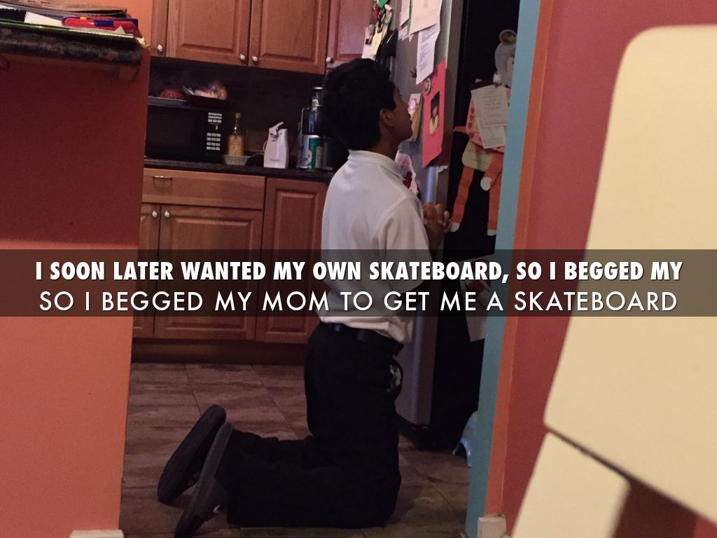 I SOON LATER WANTED MY OWN SKATEBOARD, SO I BEGGED MY