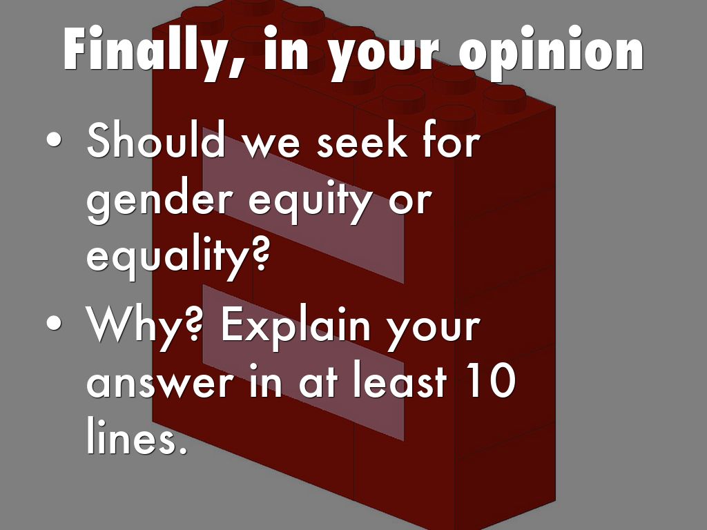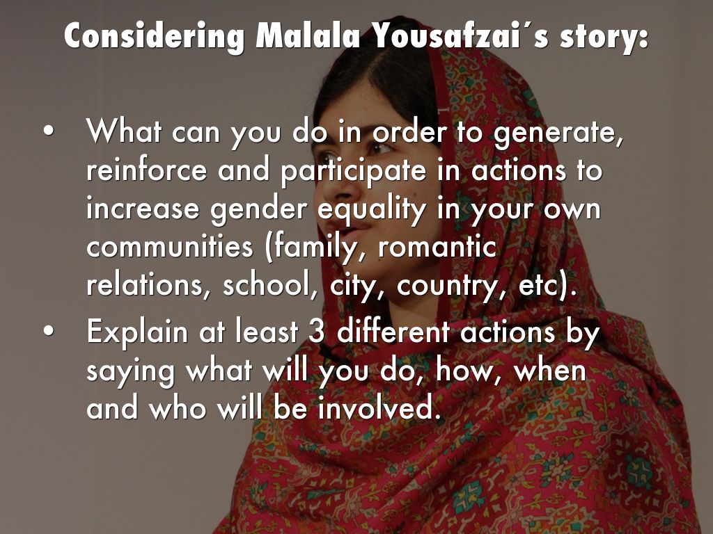 What can you do in order to generate, reinforce and participate in actions to increase gender equality in your own communities (family, romantic relations, school, city, country, etc).