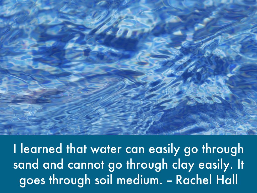 I learned that water can easily go through sand and cannot go through clay easily. It goes through soil medium. -- Rachel Hall