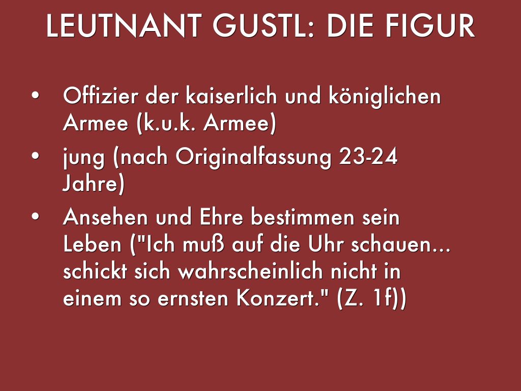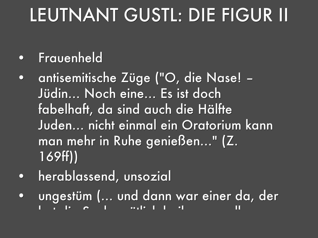 - Der Leutnant Gustl sitzt gelangweilt in einem Oratorium Konzert (vgl. Z.1-166)