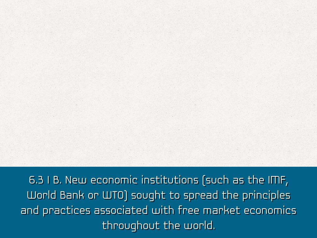 6.3 I B. New economic institutions (such as the IMF, World Bank or WTO) sought to spread the principles and practices associated with free market economics throughout the world.