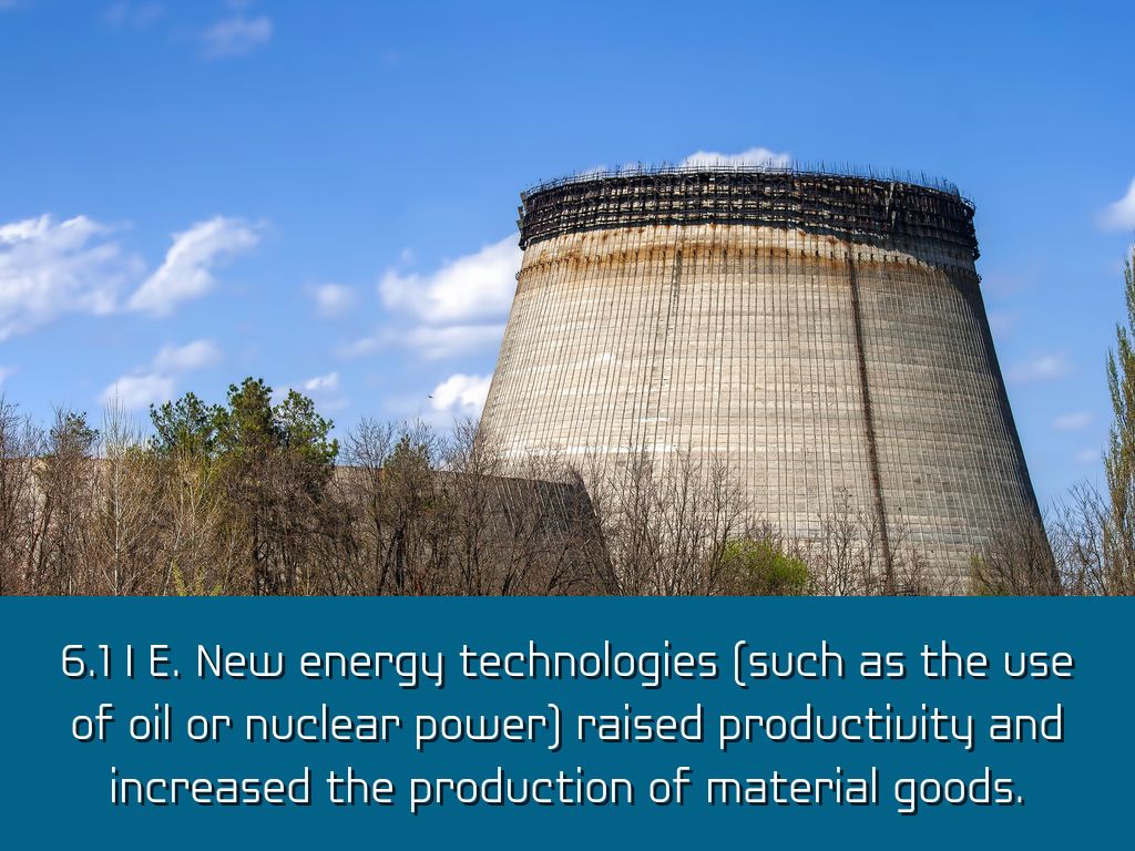 6.1 I E. New energy technologies (such as the use of oil or nuclear power) raised productivity and increased the production of material goods.