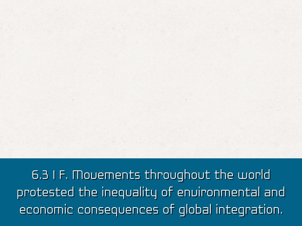 6.3 I F. Movements throughout the world protested the inequality of environmental and economic consequences of global integration.