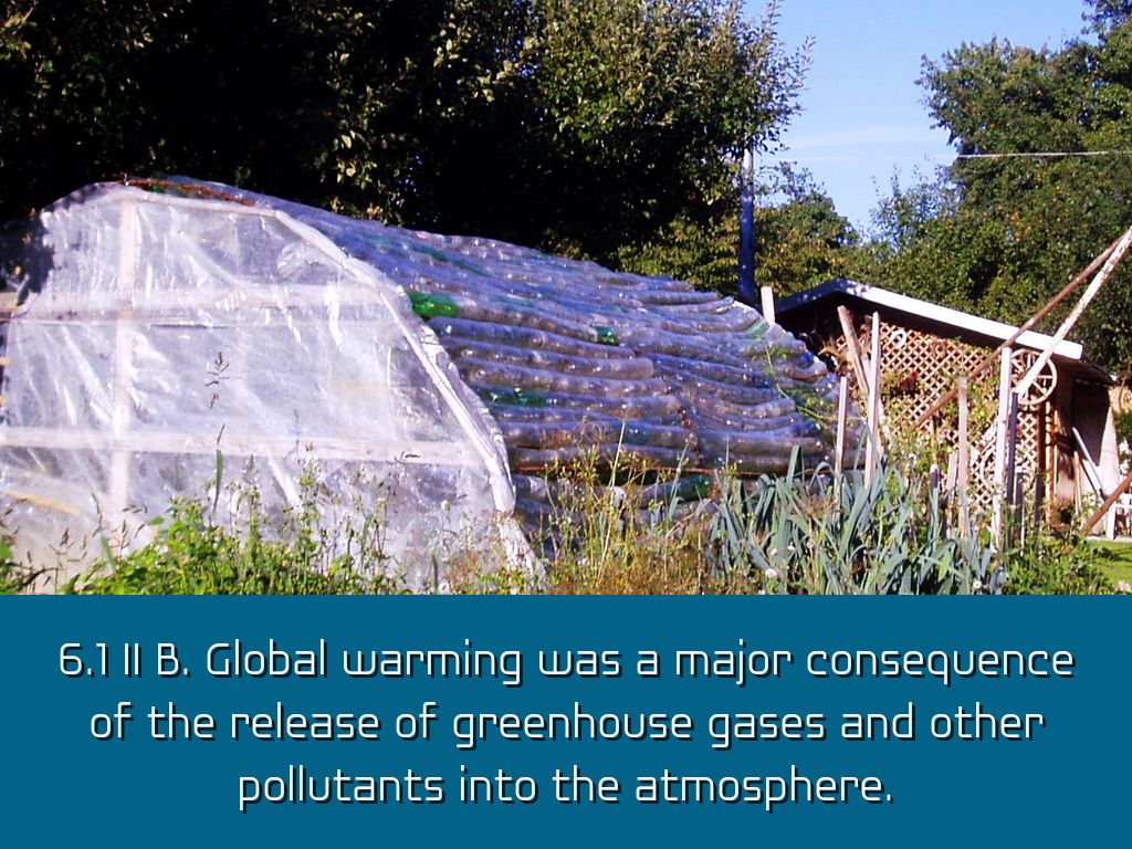 6.1 II B. Global warming was a major consequence of the release of greenhouse gases and other pollutants into the atmosphere.