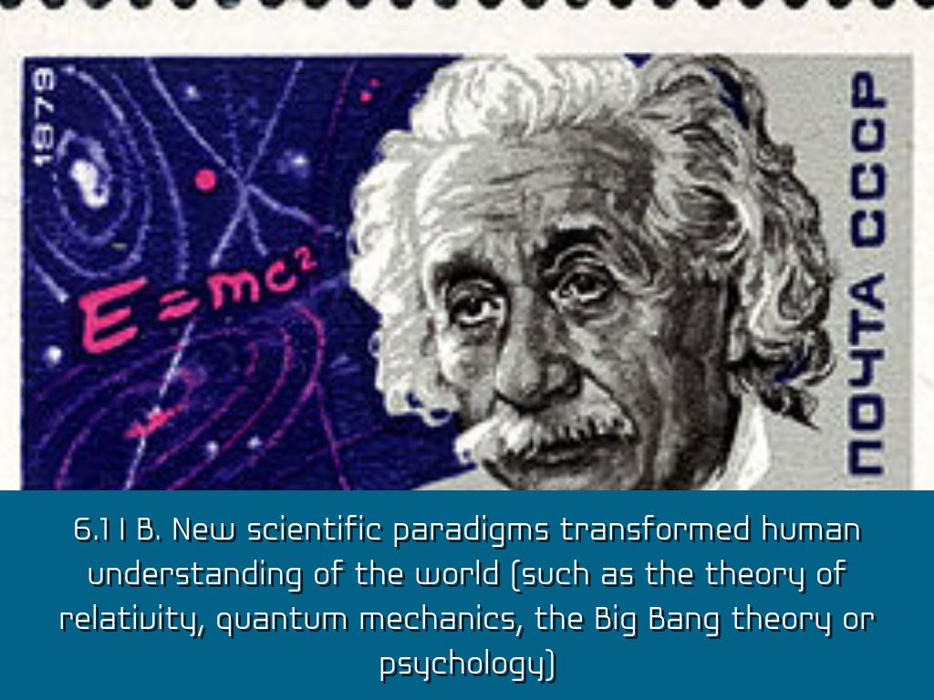 6.1 I B. New scientific paradigms transformed human understanding of the world (such as the theory of relativity, quantum mechanics, the Big Bang theory or psychology)