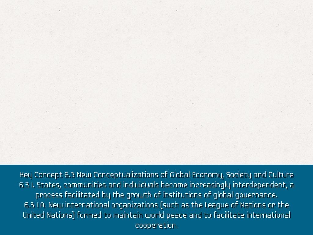 6.3 I. States, communities and individuals became increasingly interdependent, a process facilitated by the growth of institutions of global governance.