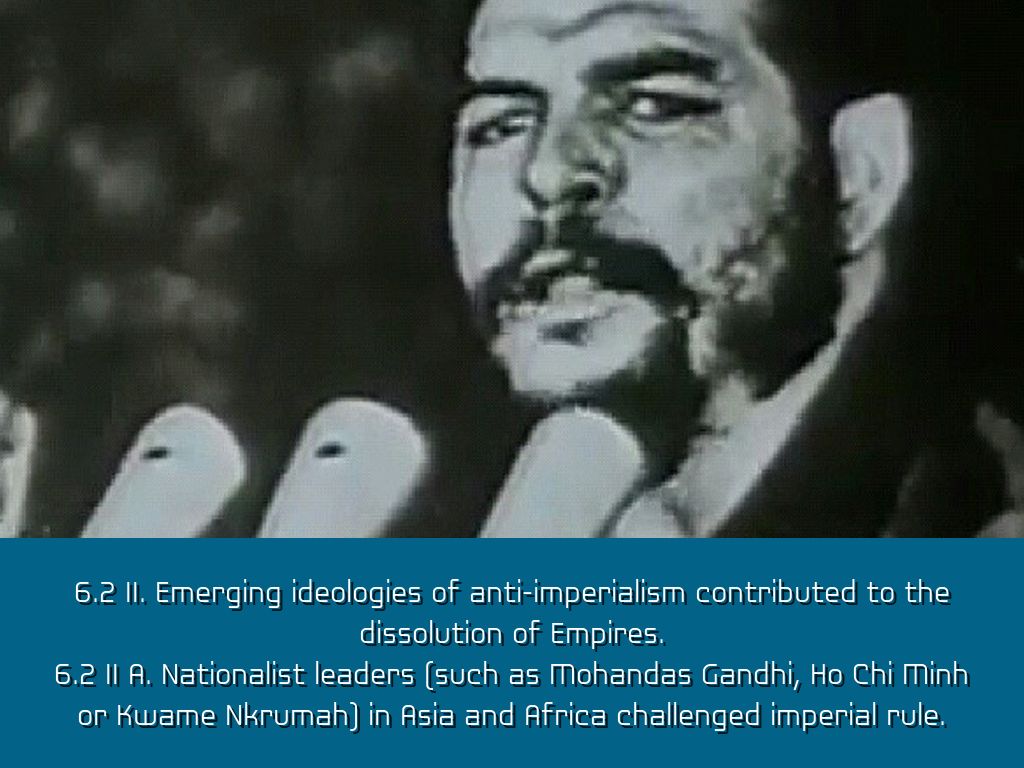 6.2 II A. Nationalist leaders (such as Mohandas Gandhi, Ho Chi Minh or Kwame Nkrumah) in Asia and Africa challenged imperial rule.