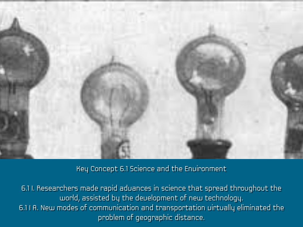 6.1 I. Researchers made rapid advances in science that spread throughout the world, assisted by the development of new technology.