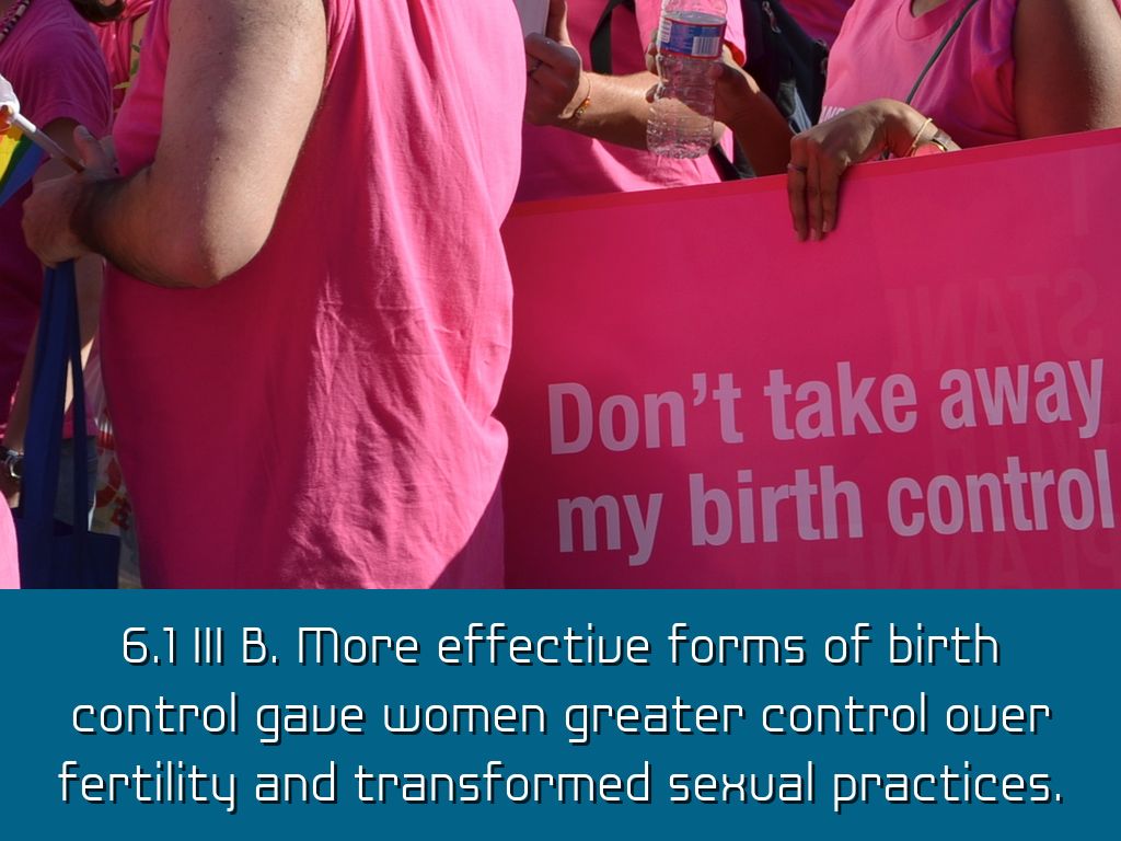 6.1 III B. More effective forms of birth control gave women greater control over fertility and transformed sexual practices.