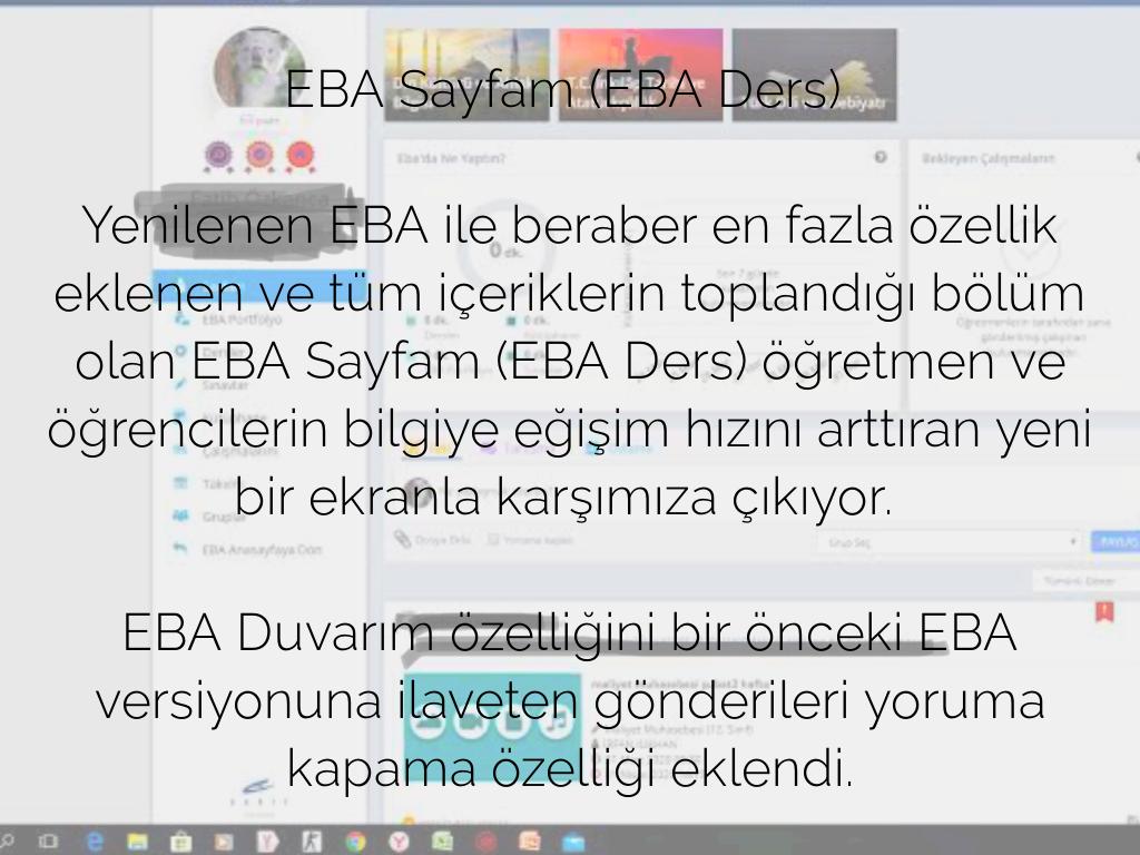 Yenilenen EBA ile beraber en fazla özellik eklenen ve tüm içeriklerin toplandığı bölüm olan EBA Sayfam (EBA Ders) öğretmen ve öğrencilerin bilgiye eğişim hızını arttıran yeni bir ekranla karşımıza çıkıyor.