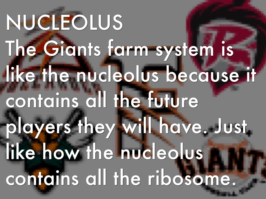 The Giants farm system is like the nucleolus because it contains all the future players they will have. Just like how the nucleolus contains all the ribosome.