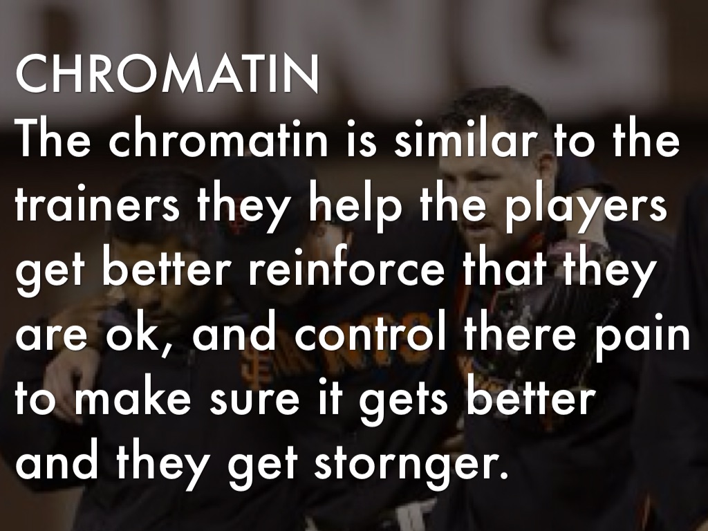 The chromatin is similar to the trainers they help the players get better reinforce that they are ok, and control there pain to make sure it gets better and they get stornger.