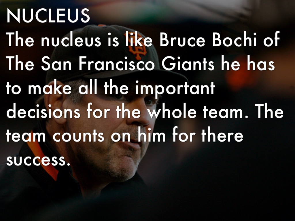 The nucleus is like Bruce Bochi of The San Francisco Giants he has to make all the important decisions for the whole team. The team counts on him for there success.