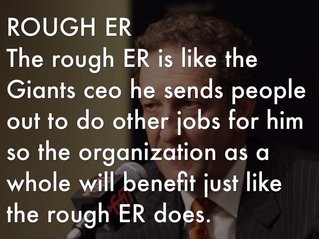 The rough ER is like the Giants ceo he sends people out to do other jobs for him so the organization as a whole will benefit just like the rough ER does.
