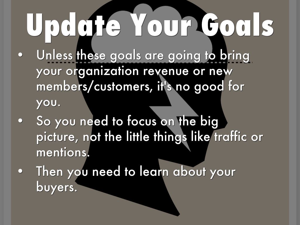 Unless these goals are going to bring your organization revenue or new members/customers, it's no good for you.