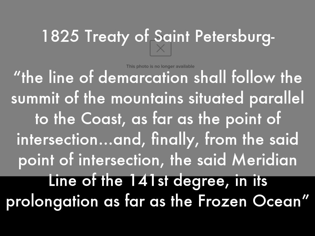 “the line of demarcation shall follow the summit of the mountains situated parallel to the Coast, as far as the point of intersection…and, finally, from the said point of intersection, the said Meridian Line of the 141st degree, in its prolongation as far as the Frozen Ocean”