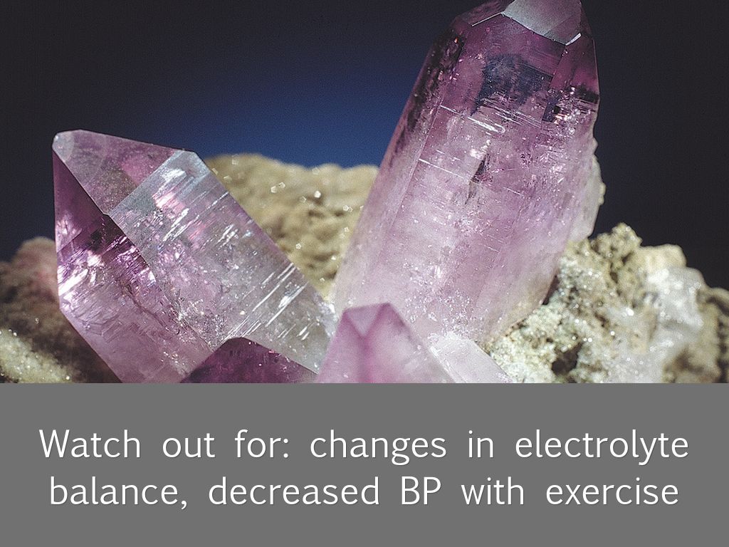 Watch out for: changes in electrolyte balance, decreased BP with exercise