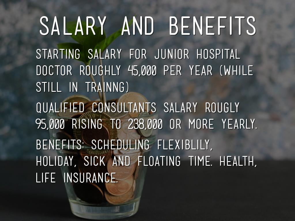 Starting salary for junior hospital doctor roughly 45,000 per year (while still in trainng)