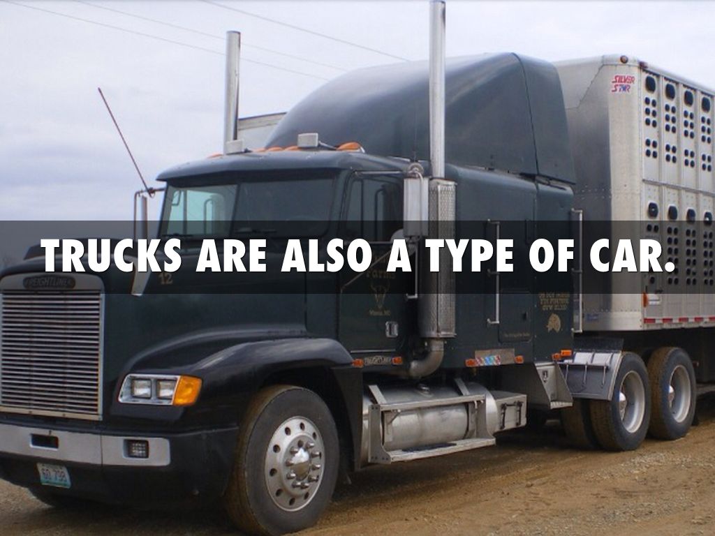 TRUCKS ARE ALSO A TYPE OF CAR.