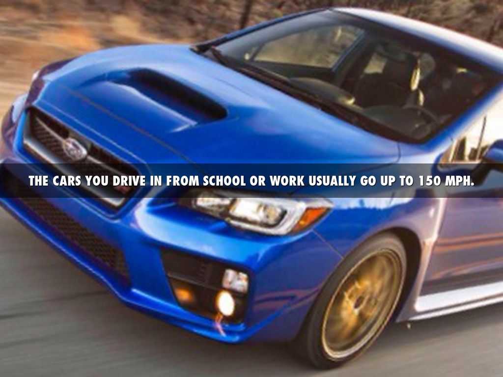 THE CARS YOU DRIVE IN FROM SCHOOL OR WORK USUALLY GO UP TO 150 MPH.