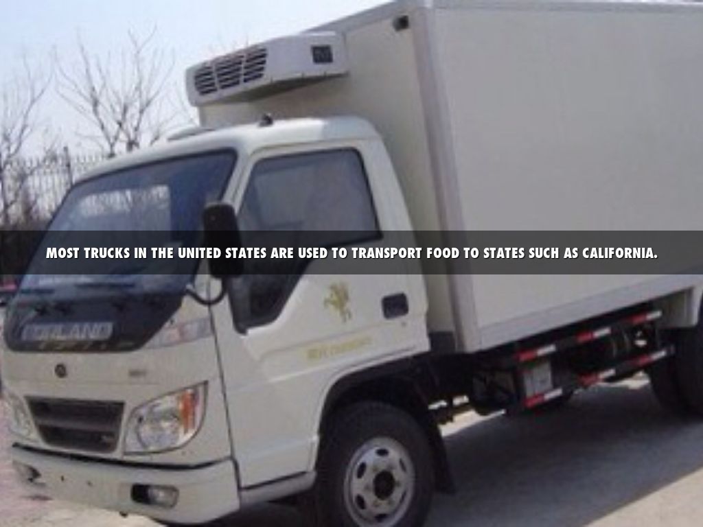 MOST TRUCKS IN THE UNITED STATES ARE USED TO TRANSPORT FOOD TO STATES SUCH AS CALIFORNIA.