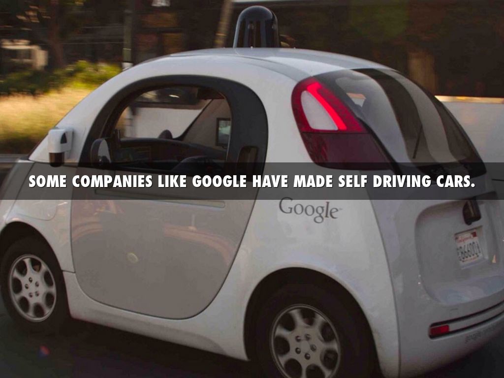 SOME COMPANIES LIKE GOOGLE HAVE MADE SELF DRIVING CARS.