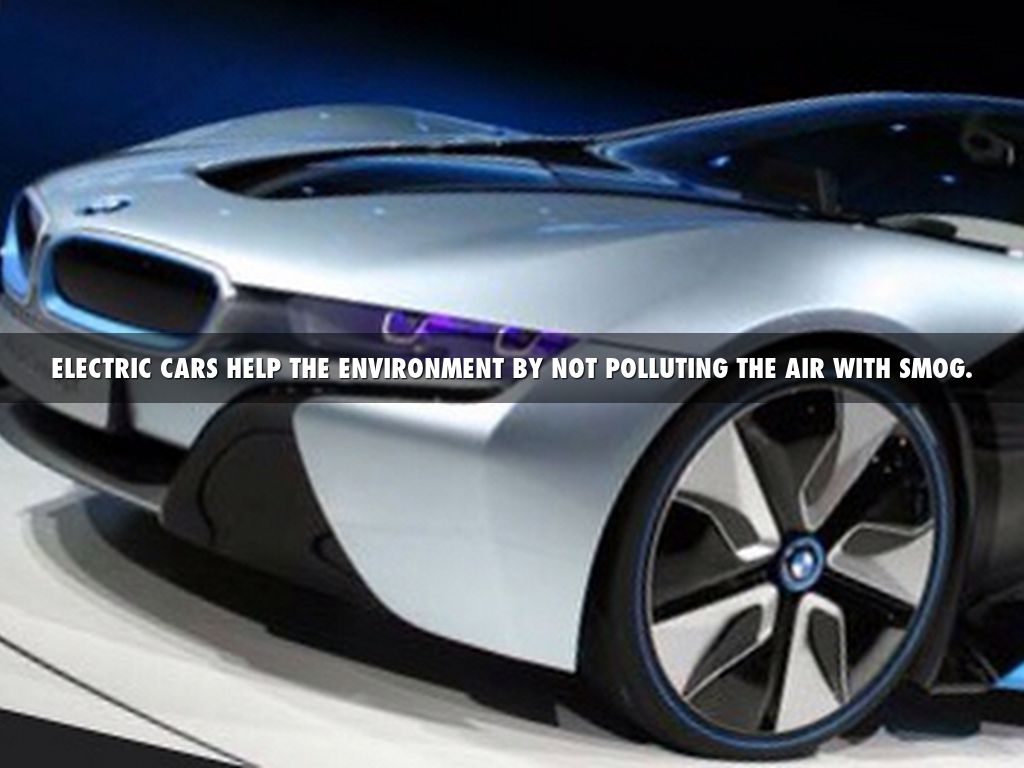ELECTRIC CARS HELP THE ENVIRONMENT BY NOT POLLUTING THE AIR WITH SMOG.