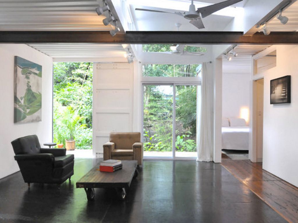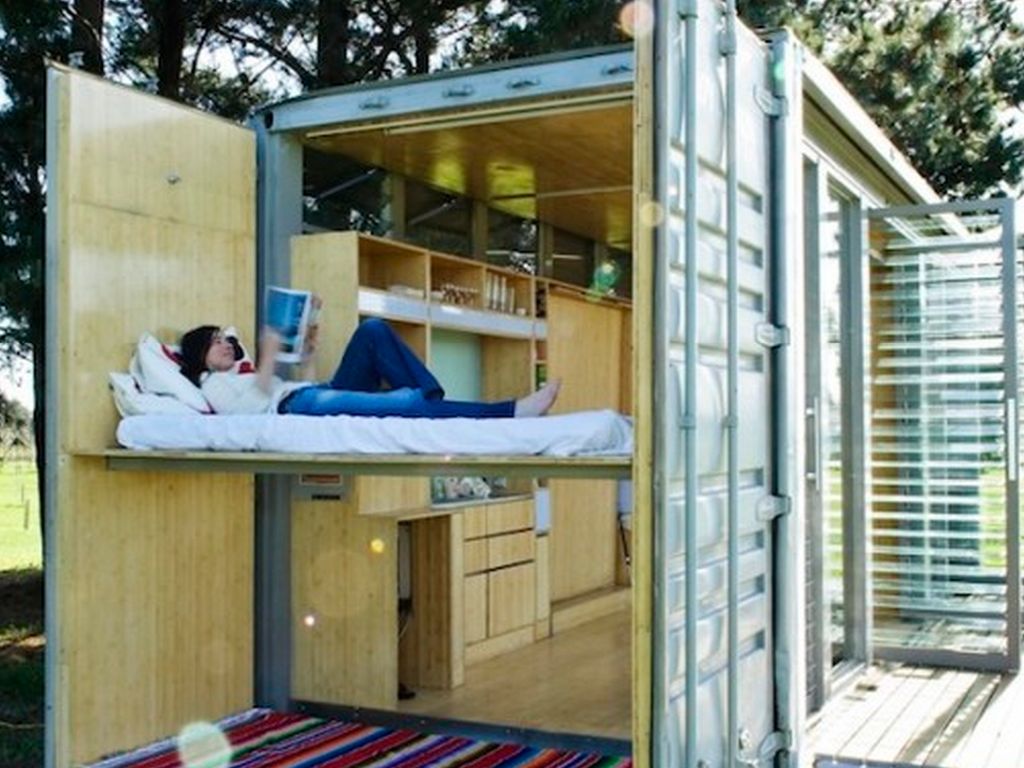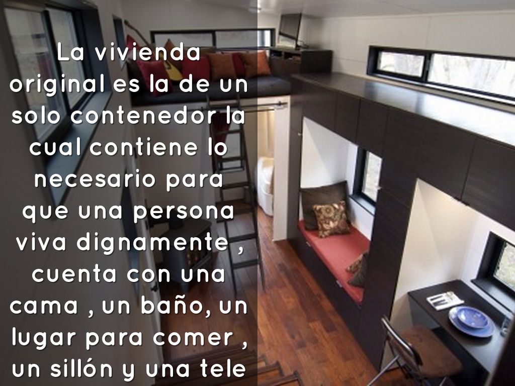 La vivienda original es la de un solo contenedor la cual contiene lo necesario para que una persona viva dignamente , cuenta con una cama , un baño, un lugar para comer , un sillón y una tele