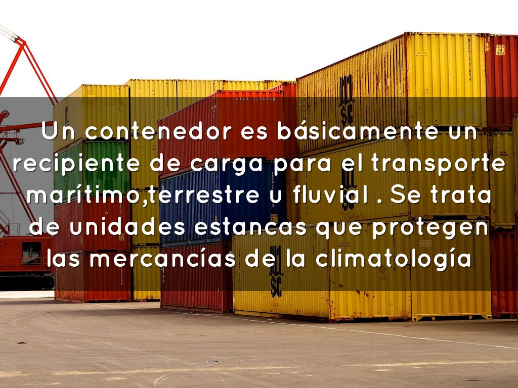 Un contenedor es básicamente un recipiente de carga para el transporte marítimo,terrestre u fluvial . Se trata de unidades estancas que protegen las mercancías de la climatología