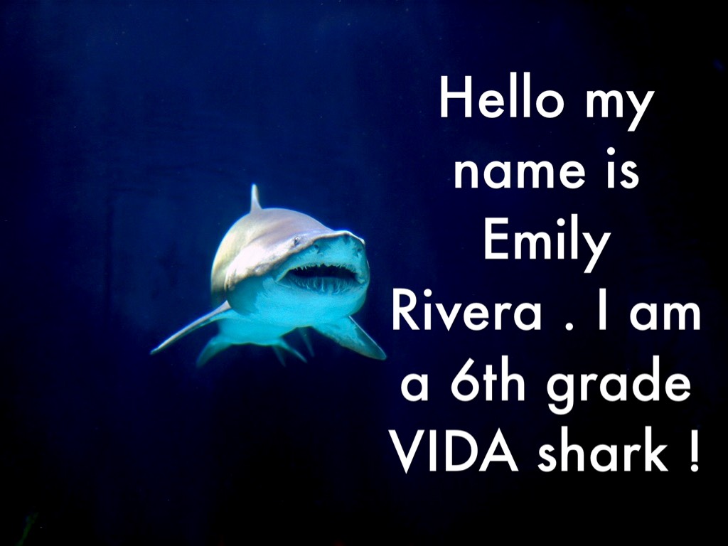 Hello my name is Emily Rivera . I am a 6th grade VIDA shark !
