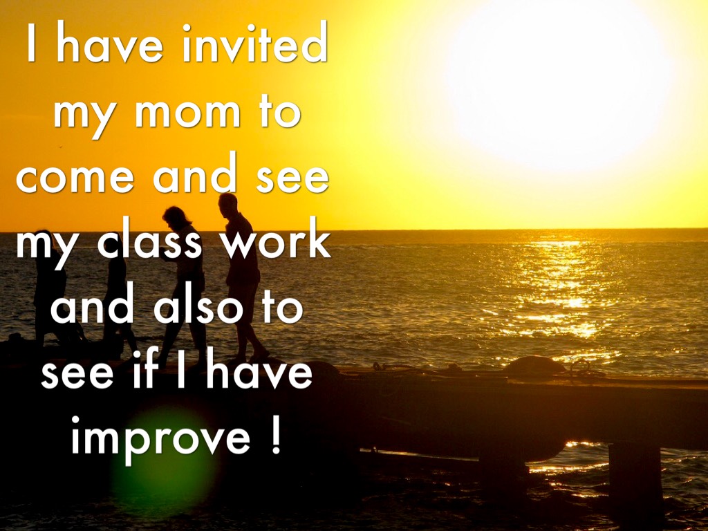 I have invited my mom to come and see my class work and also to see if I have improve !