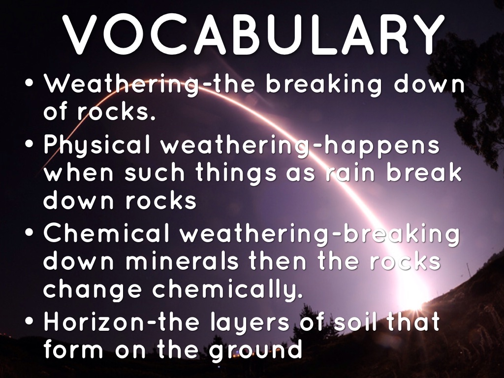 Chemical weathering-breaking down minerals then the rocks change chemically.