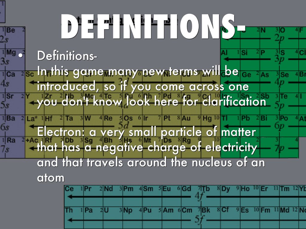 In this game many new terms will be introduced, so if you come across one you don't know look here for clarification